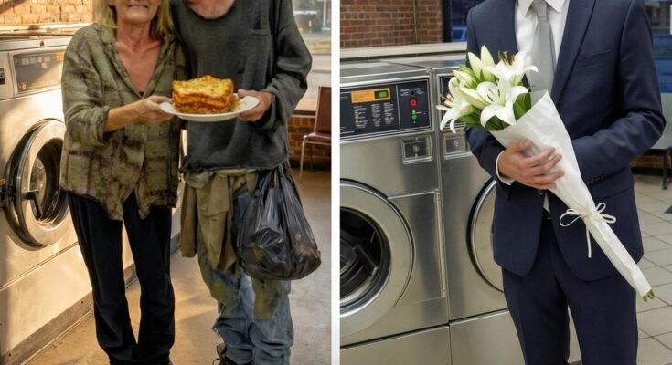 Years later, illness took my mother from me far sooner than expected. By the next Christmas, I was moving through life on autopilot, unsure how to carry on without her. On Christmas Eve, standing in her kitchen, I almost abandoned the tradition. But her voice echoed in my mind, reminding me that someone out there might still be waiting. I prepared a simple meal, wrapped it the way she always had, and drove to the laundromat. When I walked inside, I stopped in surprise. Eli was there—but transformed. He stood in a neat suit, holding a bouquet of white lilies. When he saw me, his eyes filled with tears. He explained that years earlier my mother had helped connect him with programs that offered training and support. He had rebuilt his life, found stable work, and promised her he would return one day to show he was okay.We sat together, and Eli shared something I never knew. Years ago, he had once helped me when I was briefly lost at a crowded fair, guiding me safely to a police officer before disappearing into the background. My mother never forgot that moment, and it was what first inspired her to seek him out and offer kindness. He handed me an old photograph of that day, kept safe all these years. Later, we visited my mother’s resting place, where he laid the lilies gently beside her name. As we stood there, I realized her kindness had never truly ended. It had simply grown into new connections, new support, and new understanding. That night, I carried her tradition forward, knowing that love shared freely can continue long after someone is gone.
