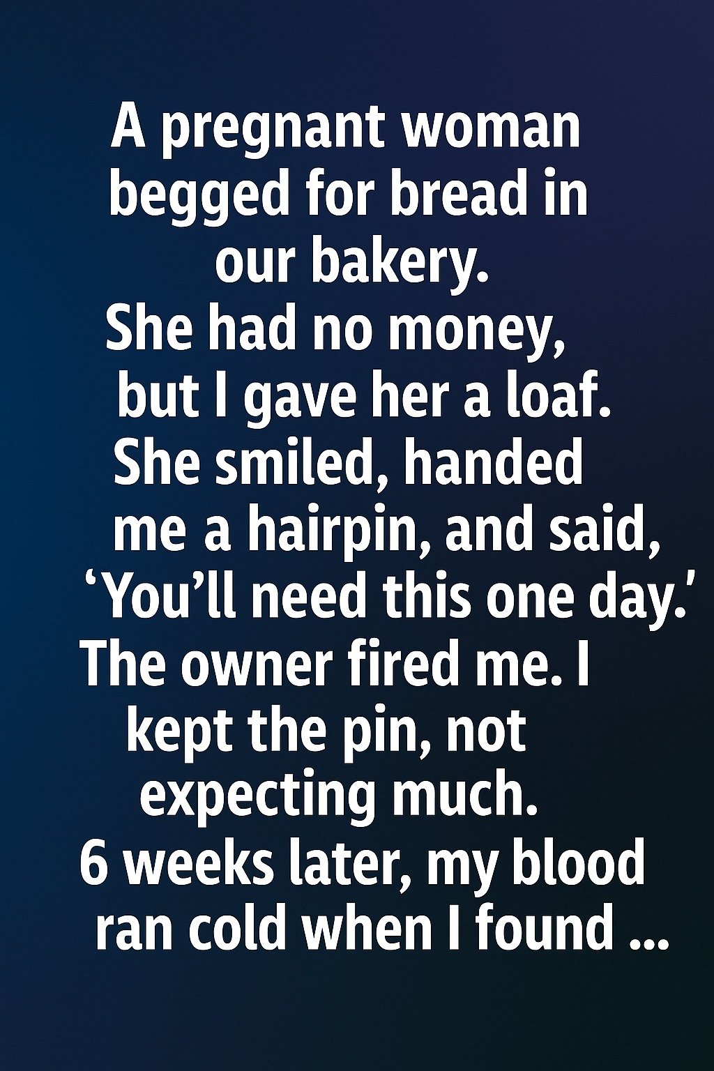 A pregnant woman begged for bread in our bakery. She had no money, but I gave her a loaf. She smiled, handed me a hairpin, and said, “You’ll need this one day.” The owner fired me. I kept the pin, not expecting much. 6 weeks later, my blood ran cold when I found… a letter tucked in my old apron pocket from that very woman. It simply read: “Sometimes kindness costs, but it never goes unpaid.”