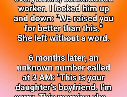 The first time Lila brought her boyfriend home, Mara thought the evening would be simple. A polite dinner, light conversation, maybe a little awkwardness — the usual things parents endure when meeting someone new in their child’s life. But when the door opened, Mara froze. The young man was tall, quiet, his arms covered in dark ink, his clothes carrying the scent of concrete dust and hard labor. He greeted them respectfully, but Mara’s eyes lingered on the tattoos and worn boots. She didn’t mean for the words to come out as sharply as they did, yet they slipped free anyway. “We raised you for better than this.” Lila’s face tightened, not with anger, but something colder — disappointment. She stood up, left her plate untouched, and walked out without a word. The door shut gently, but the sound echoed in Mara’s chest.Weeks passed. Then months. Lila didn’t call. She didn’t visit. Mara replayed that night endlessly, wishing she could pull the words back, wishing she had simply asked questions instead of passing judgment. Her husband said their daughter was strong and would return when ready. But Mara knew pride can build walls thicker than brick. Every night she set an extra place at the table, just in case.
