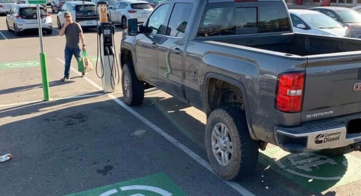 I backed my truck in, grabbed my wallet, and before I even got out, some guy walking by with groceries just stared at my truck like I’d done something outrageous. He pointed at the “EV ONLY” sign like I somehow missed it, even though it was right there.