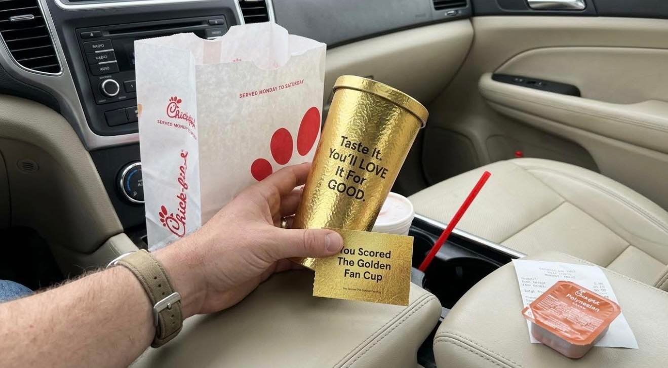 Picked up Chick-fil-A today and the employee hands me this shiny gold cup like I just won something.