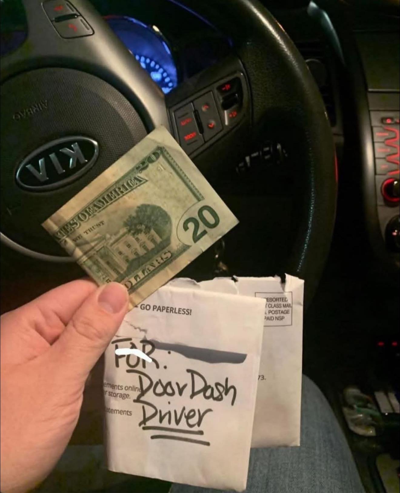 Then I saw the envelope on the counter. I opened it and it was a 10% tip. Ten percent.