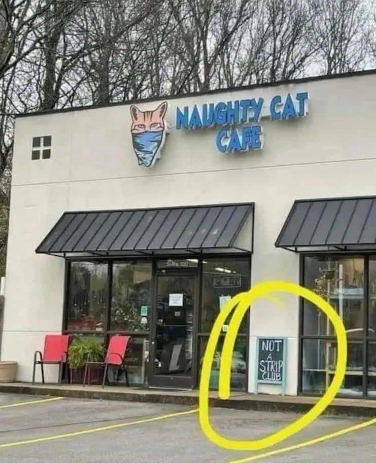But then I looked closer at the sign by the entrance and couldn’t help laughing. Right underneath the window, it literally says “NOT A STRIP CLUB.” That alone makes it seem like enough people have misunderstood the name that they felt the need to clarify it publicly.