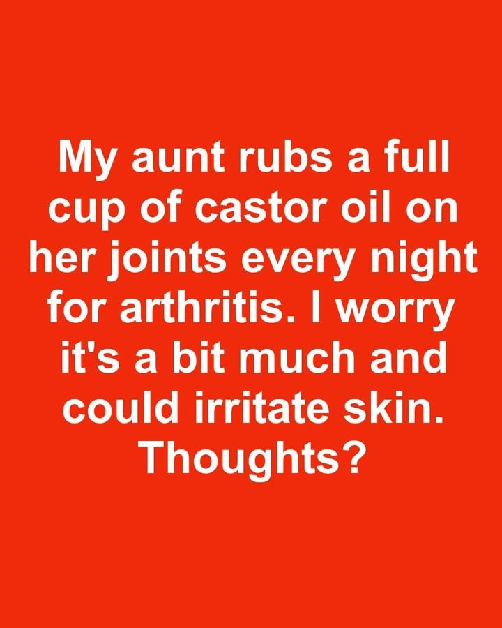 My aunt rubs a full cup of castor oil on her joints every night for arthritis. I worry it’s a bit much and could irritate skin. Thoughts?