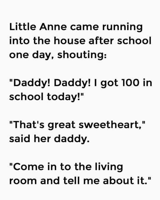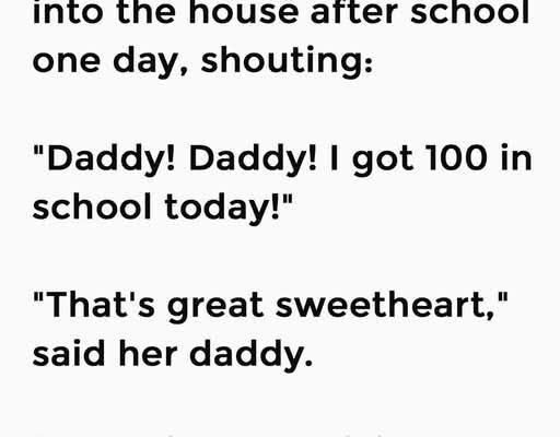 “Daddy! Daddy! I got 100 in school today!” she shouted.
