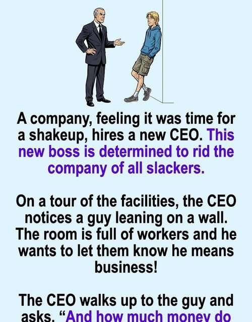 On his first tour of the building, the CEO walked through a large work area buzzing with activity. Phones rang, keyboards clicked, and employees hustled back and forth. That’s when he spotted a young guy leaning casually against a wall, arms folded, looking far too relaxed for a Monday morning. Seeing an opportunity to make an example, the CEO’s eyes lit up.