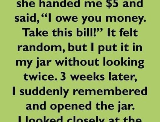 Three weeks later, I was cleaning my room when I spotted the jar glinting in the sunlight. Out of boredom, I decided to count the bills. When I unfolded that same $5, something strange caught my eye — a faint bluish scribble near the edge. I held it closer to the light, squinting, and my stomach twisted. In tiny, careful handwriting were the words: “No matter what happens, you will stay in my heart.”