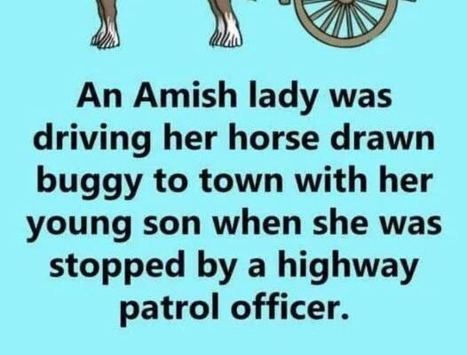 An Amish lady was driving her horse drawn buggy to town with her young son when she was stopped by a highway patrol officer.