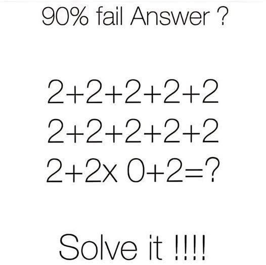 So now I will treat you to a math problem designed for school students. But it’s not that simple for those who graduated decades ago. It’s easy to forget the order of operations as we grow older.