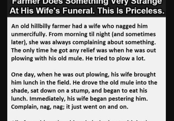 Farmer Does Something Very Strange At His Wife’s Funeral. This Is Priceless. An old hillbilly farmer had a wife who nagged him unmercifully. From morning til night (and sometimes later), she was always complaining about something.