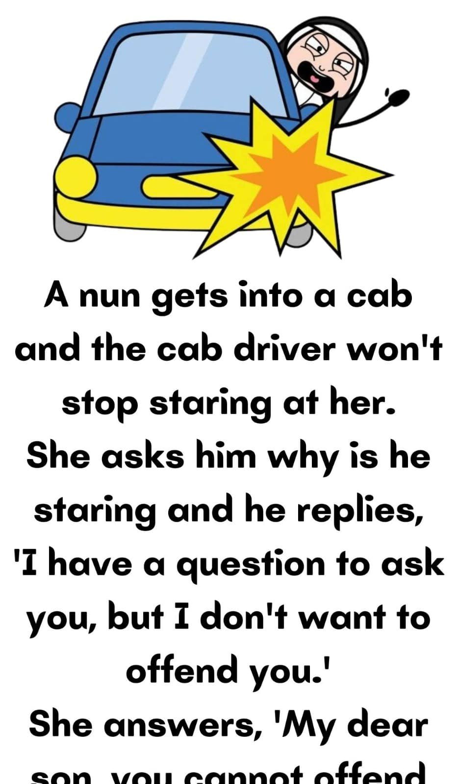 ’The cab driver is very excited and says, ‘Yes, I am single ’The nun says, ‘OK, pull into the next alley. ’He does and the nun fulfills his fantasy.