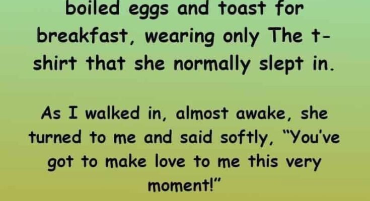 My wife was standing in the kitchen, preparing our usual Soft-boiled eggs and toast for breakfast, wearing only The t-shirt that she normally slept in.