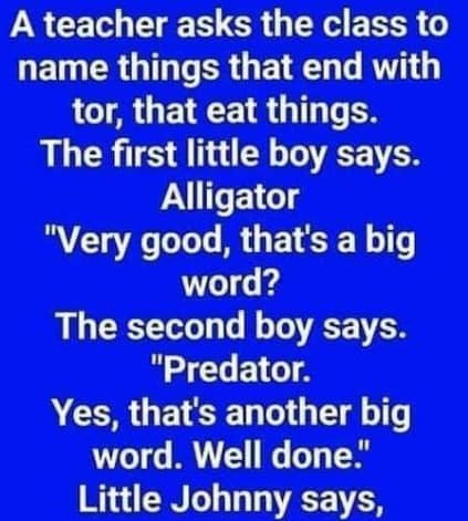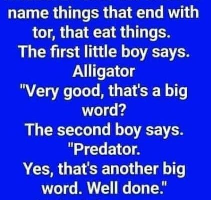The second boy says. “Predator. Yes, that’s another big word. Well done.“