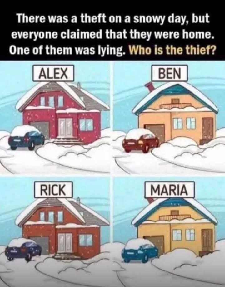 One of them was lying. Who is the thief? April 7, 2026 - by Admin - Leave a Comment One of them was lying. Who is the thief? Can you figure out who is the thief in this photo above? Good luck and pass it on! A B C Answer: The answer is Rick.