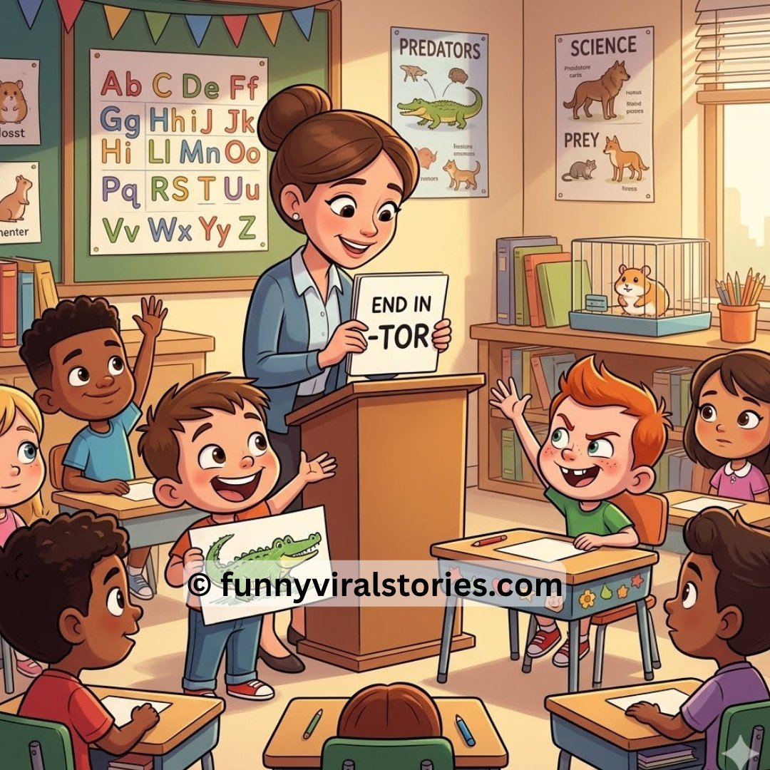 A teacher asks the class to name things that end with tor, that eat things.