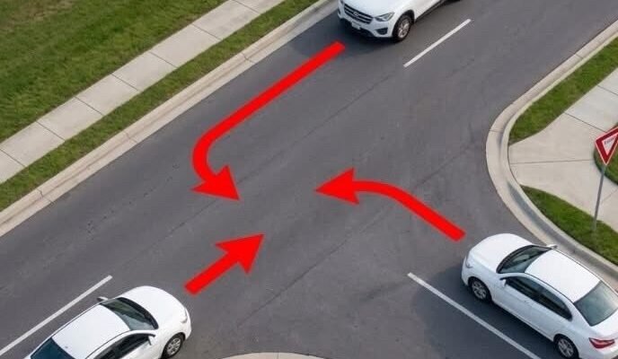 Breaking this requires not only knowing the rule but also understanding how to apply it safely and quickly. Another important factor is the presence of traffic signs, which can change the outcome. A single yield sign can determine priority and resolve confusion, but it is often overlooked. This emphasizes the importance of situational awareness, where drivers must observe both vehicles and surroundings.