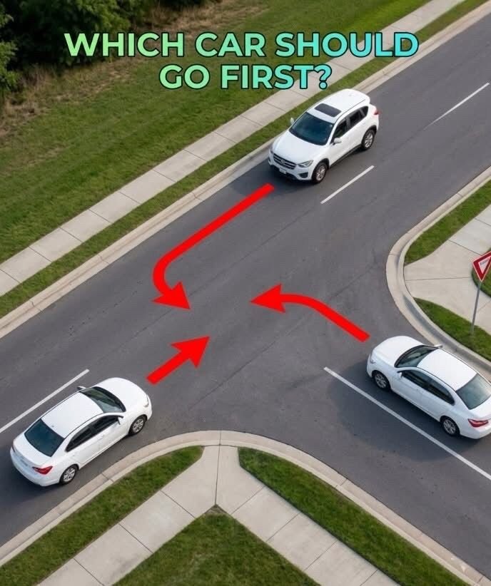 The image shows a simple yet deceptive scenario: three vehicles approaching an intersection without traffic lights. At first glance, it appears straightforward, but closer inspection reveals a complex situation that challenges perception and decision-making. Without clear signals, drivers must rely on rules, judgment, and awareness. This is what makes such scenarios interestingโthey highlight how interpretation can vary even when the rules are known.