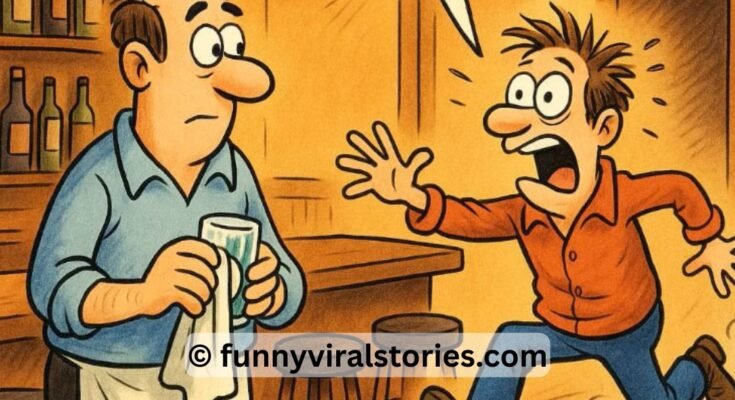 A bartender is working one evening, when a panicked man comes charging into his bar.