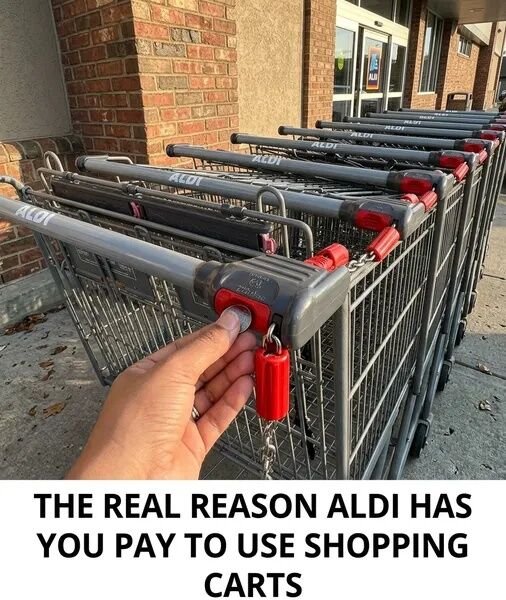 When you walk into an Aldi store for the first time, one small detail can feel surprising: you need to insert a coin—usually a quarter—to unlock a shopping cart. For many shoppers who are used to simply grabbing a cart in the parking lot of a traditional supermarket, the idea of paying a deposit might seem unusual at first.