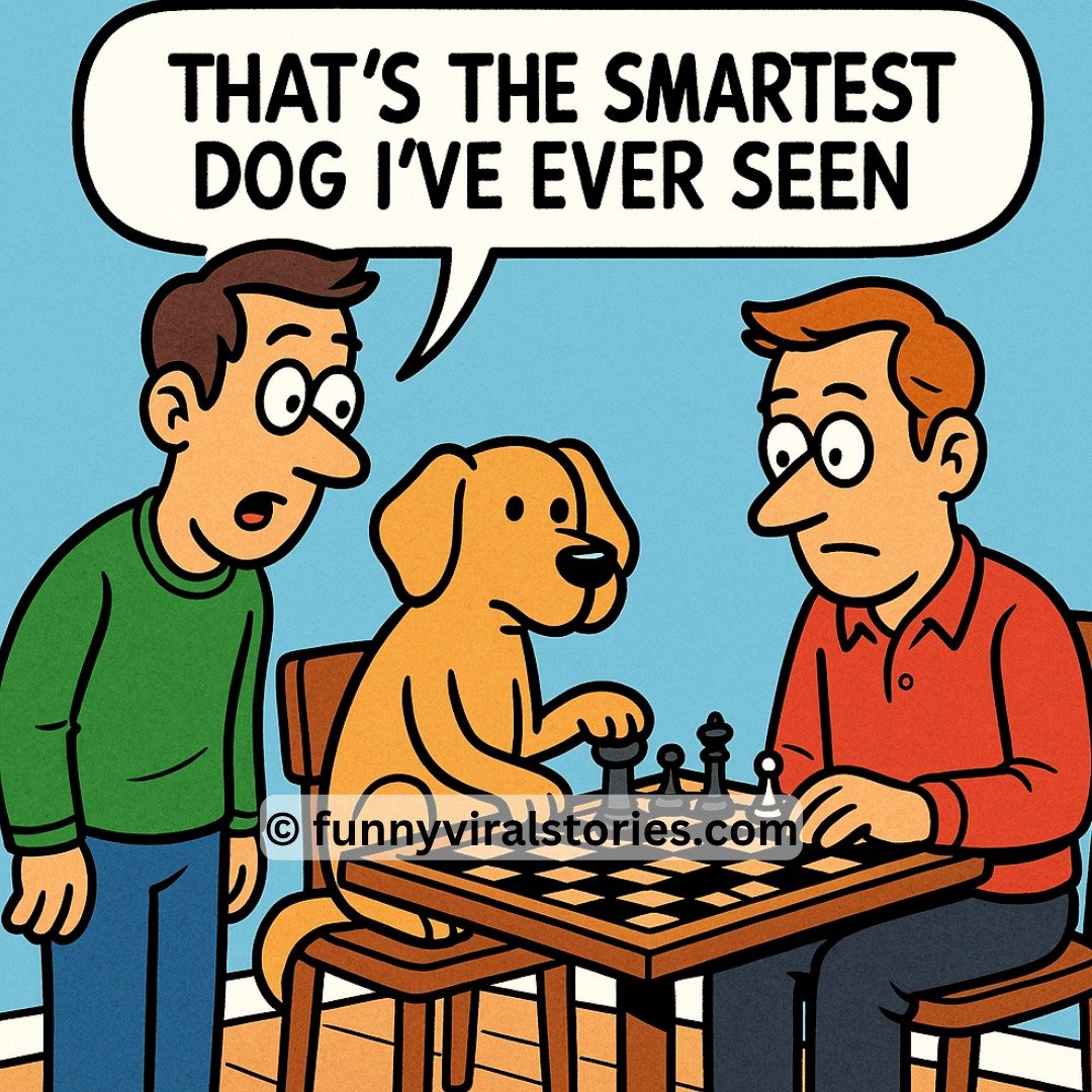A man went to visit a friend and was amazed to find him playing chess with his dog. The man watched the game in astonishment for a while.