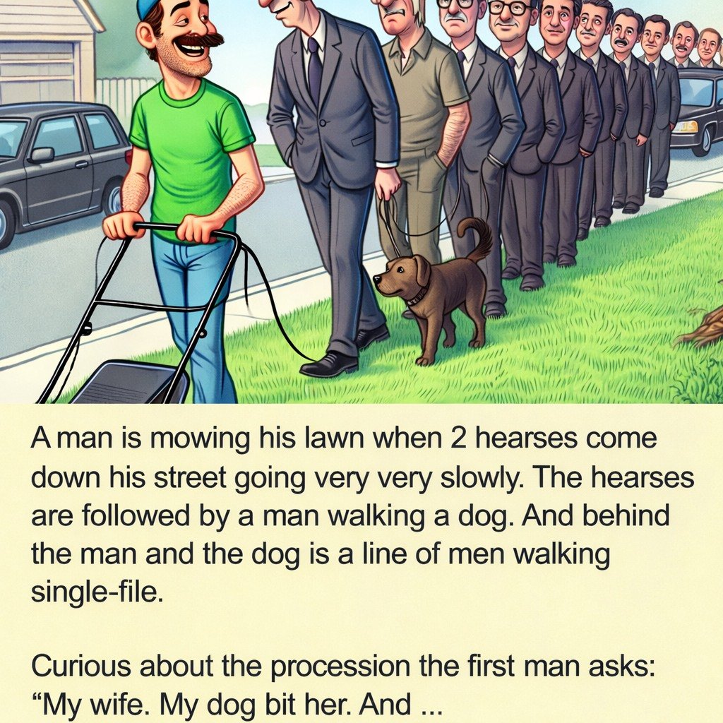 Man#2 says, “Not at all, it’s my mother in law. My dog also bit her and she died later in the hospital.”