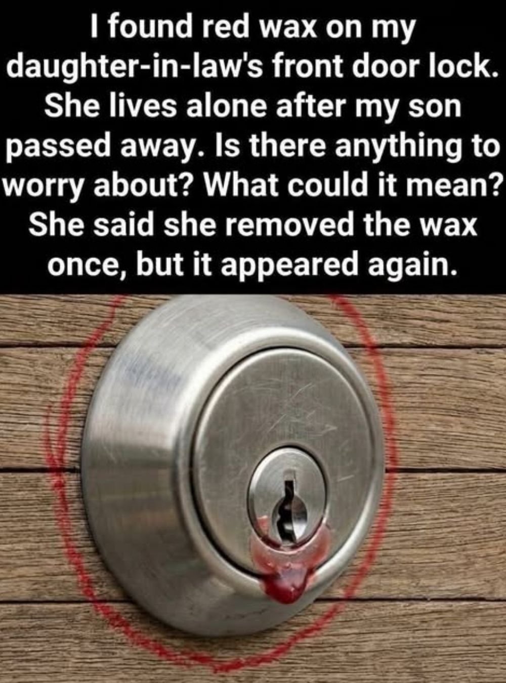 One online user recently shared an experience that drew attention to this issue. She discovered a small amount of red wax inside the keyhole of her front door. At first, she assumed it had come from something attached to her keys, but after checking, she realized none of her belongings could explain it. Concerned, she posted a photo online and asked whether anyone had seen something similar before. Some people suggested innocent explanations, such as a child playing nearby or a bit of wax or crayon accidentally pressed into the lock. Others pointed out that unusual substances placed inside a lock can sometimes be used to see whether a key is being inserted regularly. If the material remains untouched for a long period, it could suggest that no one is coming and going, which is why such signs should not be ignored.