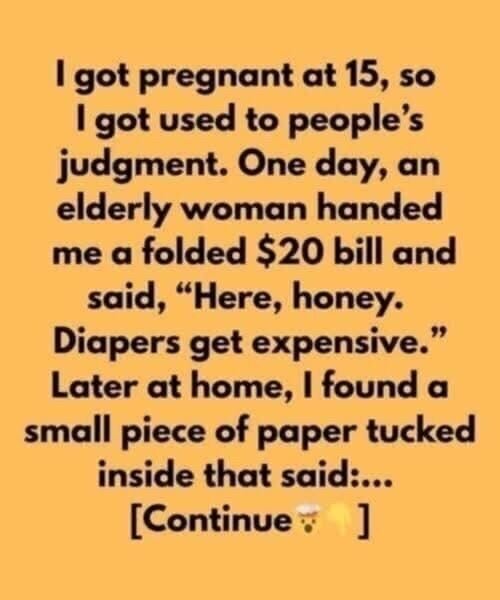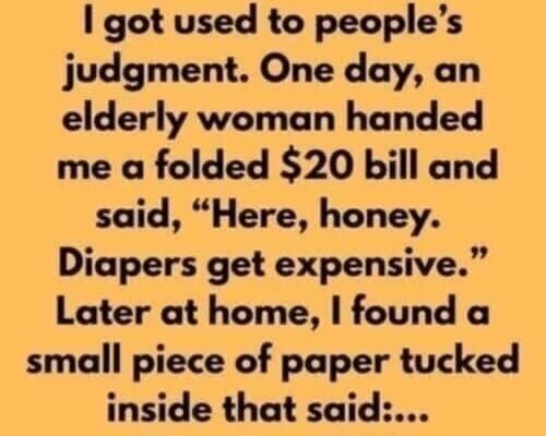 One afternoon, I was standing in line at a small corner store, holding a few groceries while balancing my tired baby on my hip. I was exhausted, both physically and emotionally, just trying to make it through another ordinary day. Then an elderly woman standing behind me reached out and gently tapped my shoulder. When I turned around, she smiled kindly, placed a folded 20-dollar bill in my hand, and said in a soft voice, “Here, honey. Diapers get expensive.”