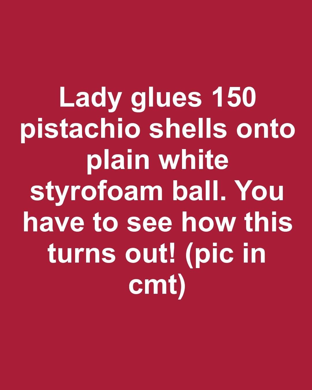 Lady glues 150 pistachio shells onto plain white styrofoam ball. You have to see how this turns out!