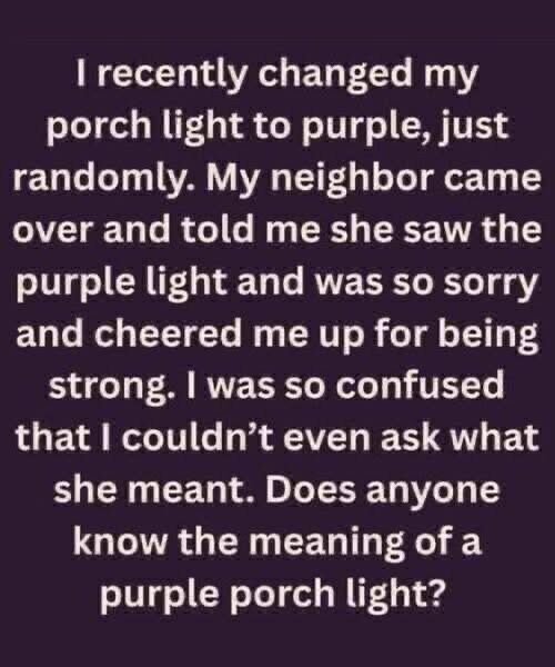 If you have ever walked through a neighborhood at night and noticed a porch glowing with a soft purple light, you may have wondered why someone chose that unusual color. Unlike the typical white or warm yellow bulbs commonly used for outdoor lighting, purple stands out immediately. Yet it doesn’t feel harsh or distracting. Instead, it often feels intentional, almost like a quiet message being shared with the community.