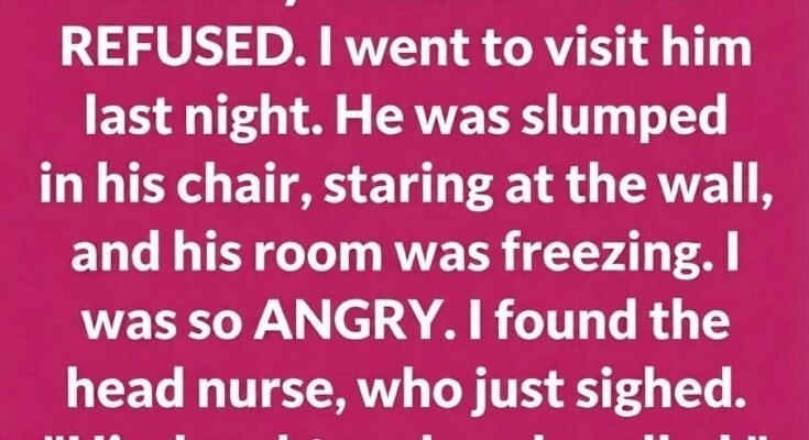 I was the one who finally got my father-in-law into a top nursing home after my late husband’s sister refused to help. One evening, I visited him after work. He sat slouched, eyes distant. But what struck me first wasn’t his expression—it was the cold. The room felt like a refrigerator. I found the head nurse and discovered Diane, his daughter, had left strict instructions: no heat unless the temperature dropped below fifty.