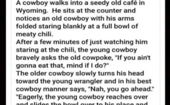 Cowboy chili, A cowboy walks into a seedy old café in Wyoming. He sits at the counter and notices an old cowboy with his arms folded staring blankly at a …