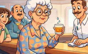 An elderly woman walked into the bar on a cruise ship and politely ordered a Scotch with just two drops of water. When the bartender set the glass in front …