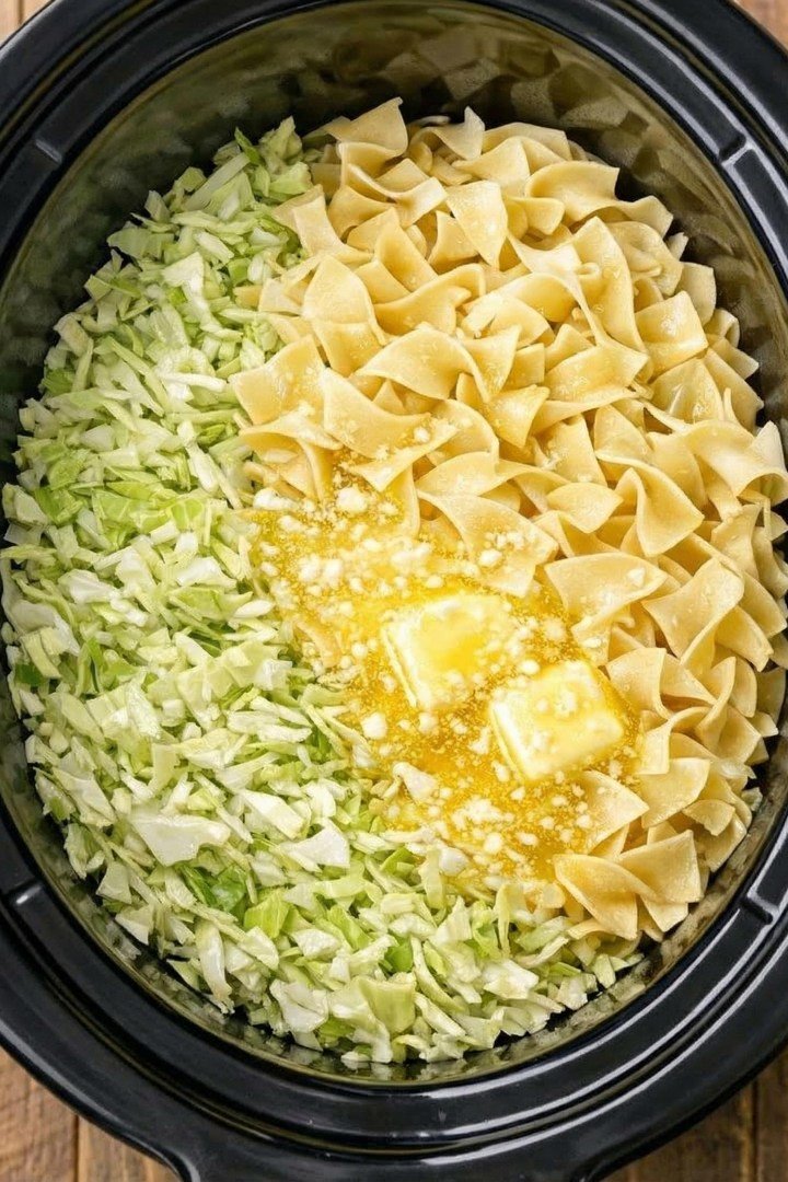 This slow cooker cabbage and noodles recipe is the ultimate comfort food for busy days. Inspired by classic Midwestern and Eastern European dishes like haluski, it’s easy, cozy, and full of flavor. The slow cooker does all the work, gently softening the cabbage and onions while letting the buttery, savory aroma fill your home. By the time you’re ready to eat, the noodles have soaked up all the rich flavors, creating a warm, satisfying meal that’s both budget-friendly and simple to make with common pantry ingredients.One of the best things about this dish is its versatility. It’s hearty enough to enjoy on its own, yet pairs beautifully with a variety of sides. Serve it with grilled or baked sausages, kielbasa, or roasted chicken for a protein boost. Fresh vegetables, like a crisp green salad, roasted carrots, or Brussels sprouts, balance the richness of the noodles. For a simple, classic touch, add crusty bread or dinner rolls to soak up the extra juices, or for a traditional Midwestern spread, pair it with mashed potatoes or pierogi and a dollop of sour cream.Preparing this dish is simple and low-maintenance. Start by thinly slicing a small head of cabbage and a medium onion, then layer them in a slow cooker with melted butter, olive oil, and seasonings like salt, pepper, garlic, paprika, and optional caraway seeds. Pour in some vegetable or chicken broth, add a touch of soy sauce or Worcestershire sauce for depth, and let it cook on low for four to five hours (or high for two to three hours) until the cabbage is tender and sweet. Just before serving, stir in cooked egg noodles and a little extra butter, then let them warm together to absorb all the flavors. A sprinkle of fresh parsley or chives adds a final pop of color and freshness.