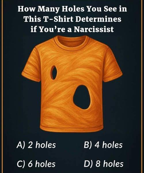 A viral brain-teaser featuring an orange T-shirt with two rips asks viewers: “How many holes do you see — 2, 4, 6, or 8?” The post cheekily claims your answer says something about your personality. Rather than a psychological test, it’s a light puzzle that reveals how people define and perceive “holes.”