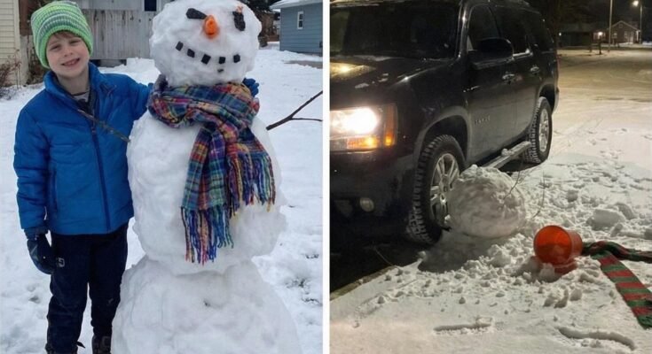 That winter, my eight-year-old son found endless joy in building snowmen in the same small corner of our front yard. Every afternoon after school, he rushed outside, cheeks red from the cold, carefully shaping snow into characters with names, stories, and a familiar red scarf that made each one feel complete. Watching him from the window was a reminder of how simple happiness can be. What spoiled that joy, again and again, were the tire tracks. Our neighbor routinely cut across that corner of the lawn while pulling into his driveway, flattening the snowmen without slowing down. I asked him politely to stop more than once, explaining how much it upset my child, but he brushed it off as unimportant. To him, it was “just snow.” To my son, it was something he had created with care.After the first few incidents, my son came inside quieter than usual, holding back tears as he described another snowman destroyed. Each time, I tried to comfort him, suggesting we move the snowmen closer to the house, but he refused. That spot mattered to him—not because it was convenient, but because it felt right. He understood, even at eight years old, that he wasn’t doing anything wrong. The repeated dismissals from an adult who wouldn’t respect our property or his feelings were harder for him to process than the broken snowmen themselves. I tried again to reason with the neighbor, asking for basic respect, but the conversation ended the same way it always did: with indifference.