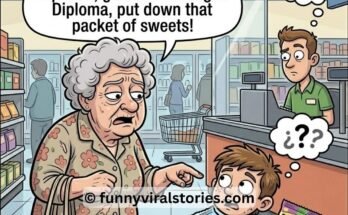 Grandmother and her grandson are shopping at the Supermarket. Grandma: “Diploma, give me the sugar. Diploma, put down that packet of sweets. Cashier : “Granny, is your grandson’s name …