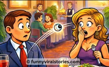 At a hotel restaurant, a man notices a beautiful woman sitting alone at the next table. Suddenly, she sneezes – and her glass eye goes flying across the room! …