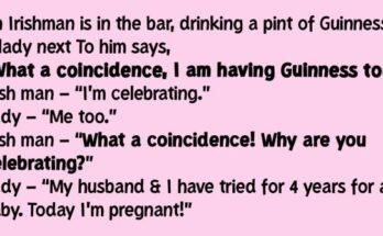 An Irishman is in the bar, drinking a pint of Guinness, A lady next To him says, “What a coincidence, I am having Guinness too. ”Irish man – “I’m celebrating. …