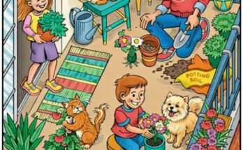 Rachel and Derek love helping their dad grow plants on the apartment balcony when they stay with him each weekend. Find the hidden objects: horseshoe, banana, bow tie, toothbrush, pencil, …
