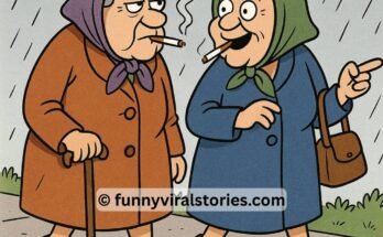 Two old women are walking down the street smoking, when it begins to rain. The first woman takes out a condom from her handbag, cuts off the tip and …