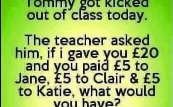 Tommy got kicked out of class today. The teacher asked him: “If I gave you £20 and you paid £5 to Jane, £5 to Clair & £5 to Katie, …