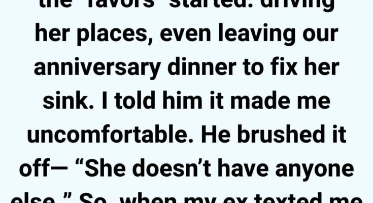 I gently told him how uneasy it made me feel. He smiled, brushed my concern aside, and said, “She has no one else to rely on. I’m just being kind.” I wanted to be supportive, but kindness felt one-sided when he left our anniversary dinner early to fix her sink. It wasn’t jealousy — it was feeling like I always came second. I wondered why my feelings weren’t receiving the same empathy he offered her.