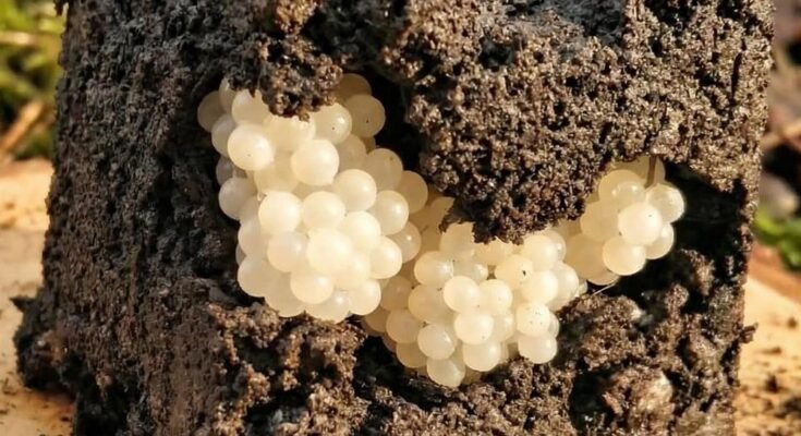 While spending a quiet afternoon tending my garden, I noticed something that immediately caught my attention. Near the base of one of my flower beds was a small patch of soil dotted with tiny white spheres. They stood out against the dark earth, almost glowing in the sunlight. At first glance, they looked decorative—like small pearls or beads that had somehow ended up in the dirt. Curious and slightly puzzled, I knelt down to take a closer look, wondering how something so neat and uniform could appear naturally in my garden.As I examined them more closely, their appearance became even more intriguing. The spheres were smooth, round, and slightly translucent, with a soft sheen that reflected the light. I put on gardening gloves and gently moved the soil around them, careful not to damage whatever they might be. When I touched them, they felt soft and slightly squishy rather than solid. That was the moment I realized they were likely organic. A sense of uncertainty set in as I considered the possibilities—perhaps insect eggs or something left behind by a small animal. Wanting to be sure, I collected a few and brought them inside to examine them under brighter light.